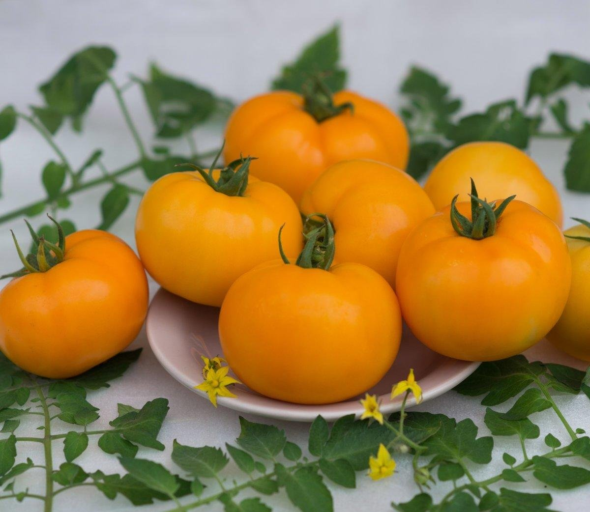 - Финиш. Куст вырастает до 75 см, с помидорами плодами, обладает замечательным вкусом, апельсиново-пурпурного окраса, весит 90 г. У него высокая урожайность и обладает иммунитетом к вертициллезу.