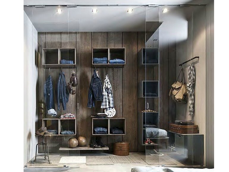 В открытых системах хранения размещают одежду, аксессуары, обувь. Будет удобно помещать их на полки не только в открытом виде, но и в коробках и кофрах, которые спасут вещи от пыли и добавят в интерьер эстетики.