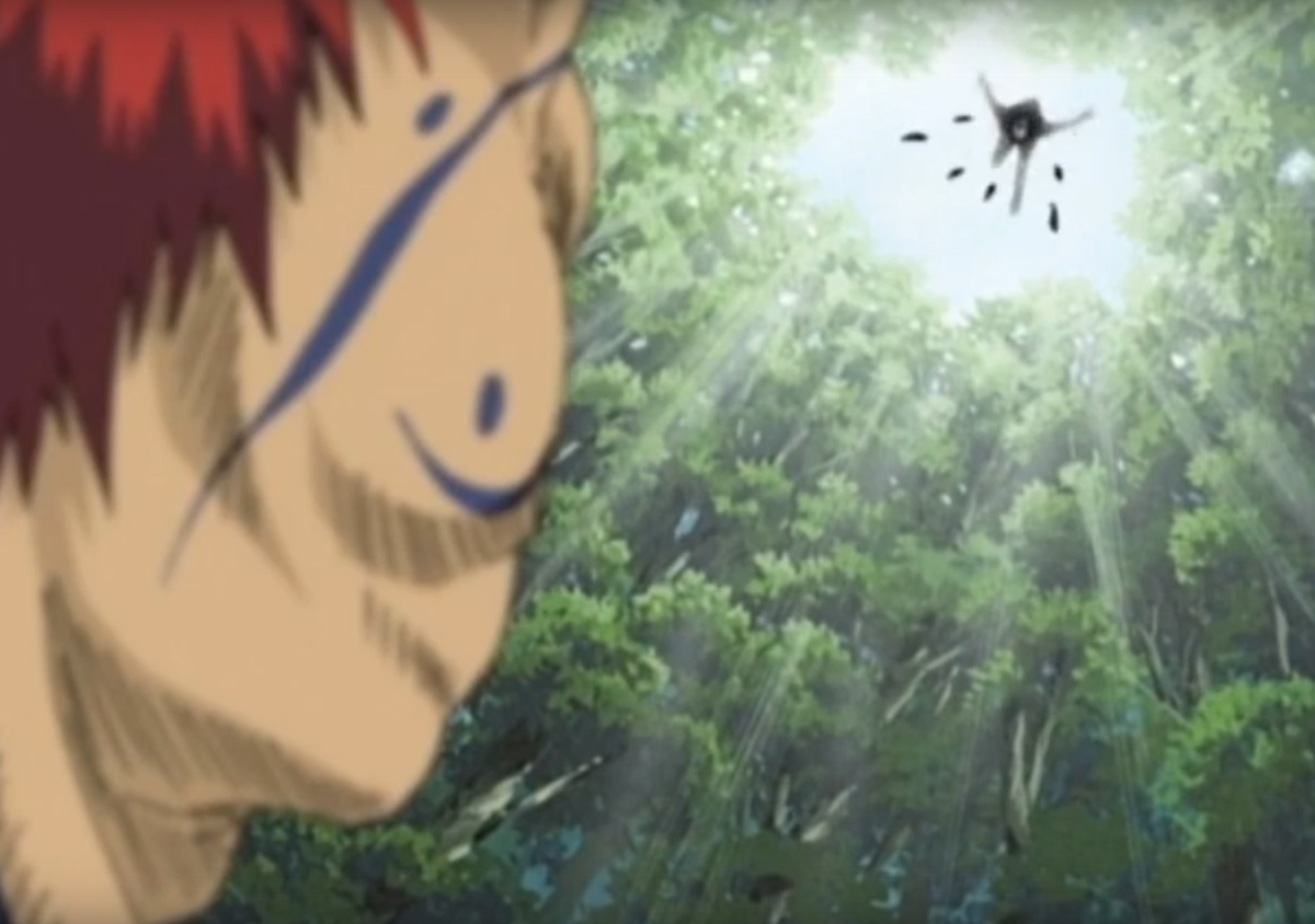 Но Гаара не такой, как остальные. Ему не нужно ходить по стенам, он замечательно управляет песком, который и стал спасительной рукой в этой ситуации. И вроде бы всё хорошо - он даже улыбнулся, протягивая сверстникам мяч.
