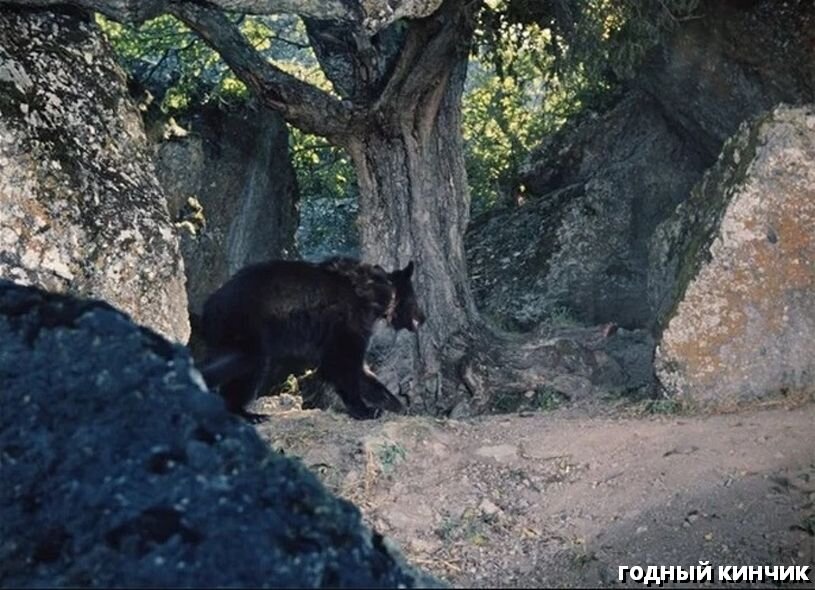 В этом фильме показывали, как дикий медведь бродит по горам. Мало того, что гималайские медведи (а именно он показан в картине) не обитают на Кавказе, так на нем еще и красуется ошейник. К тому же в одном из кадров видно, как медведь ловит еду от дрессировщика.