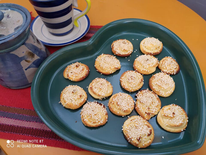 Посыпала кунжутом и выпекала при 200 градусах около 15 минут (пока кунжут не подрумянился).