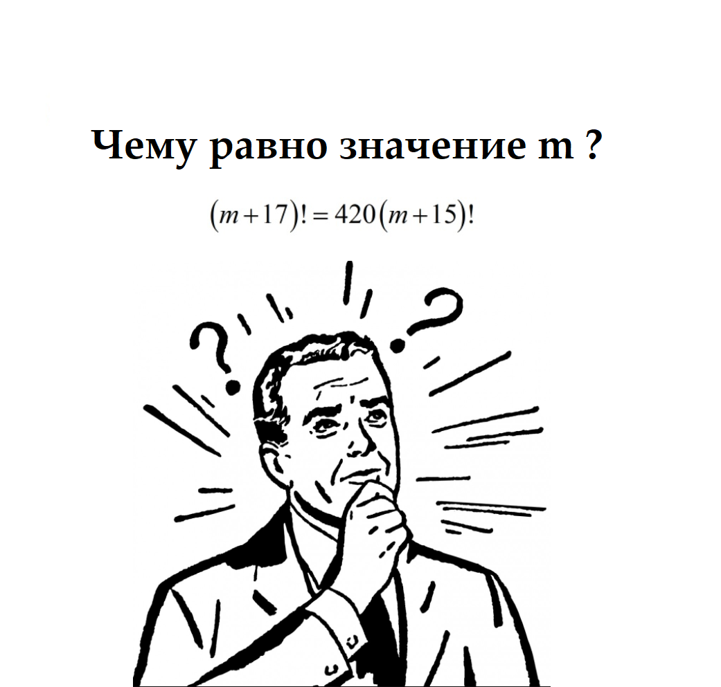 Давайте начнем именно с задачи... Итак, нам дано вот такое вот уравнение (m + 17)! = 420*(m + 15)! Требуется найти m.