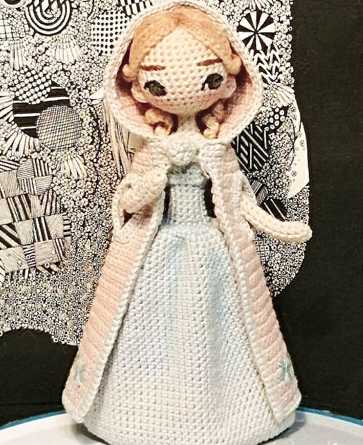 Прикрепите волосы на голову куклы.