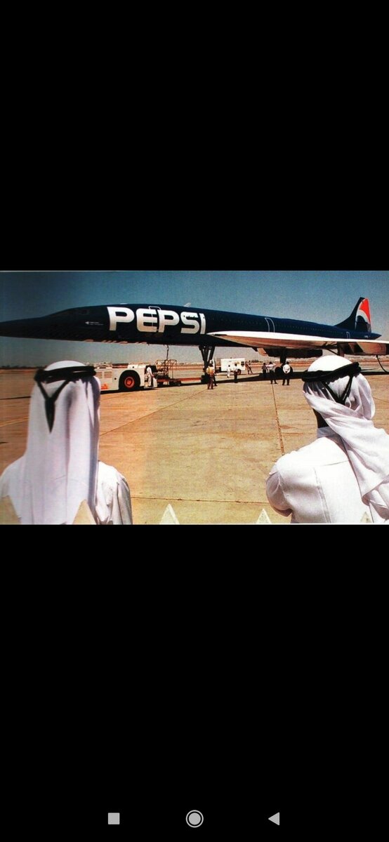 Самолёт Канкорде, во время его рекламного тура с логотипом *пепси*