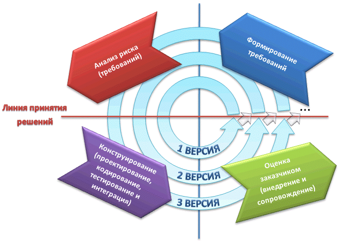 Рис. 1. Схема спиралевидная модели внедрения программного продукта