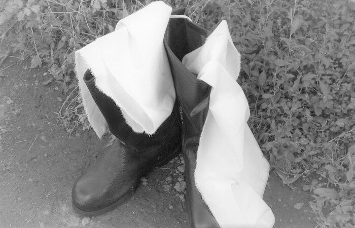 И на этот случай «солдатская смекалка» нашла решение. Портянка кладётся поверх сапога, на его голенище, а потом просто засовывается в сапог вместе с ногой. Конечно, способ не совсем «правильный» и спустя какое-то время придется всё сделать как положено, но, если требуется скорость- вполне рабочий.