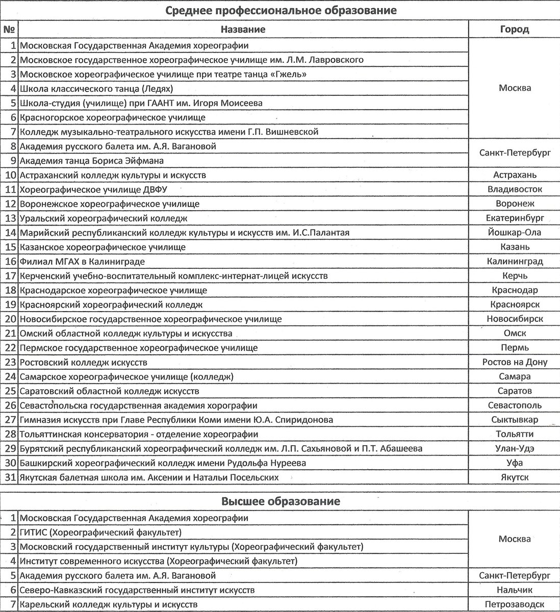 После того, как я разобрался с театрами, на сегодня их в списке 49 государственных и 7 частных, аппетит у меня разыгрался и я решил выяснить ситуацию с учебными заведениями. Которые, по большей своей части, дают среднее профессиональное образование по специальности 52.02.01 ИСКУССТВО БАЛЕТА. Высшее образование возможно по таким специальностям как: балетмейстер, педагог и менеджер в области