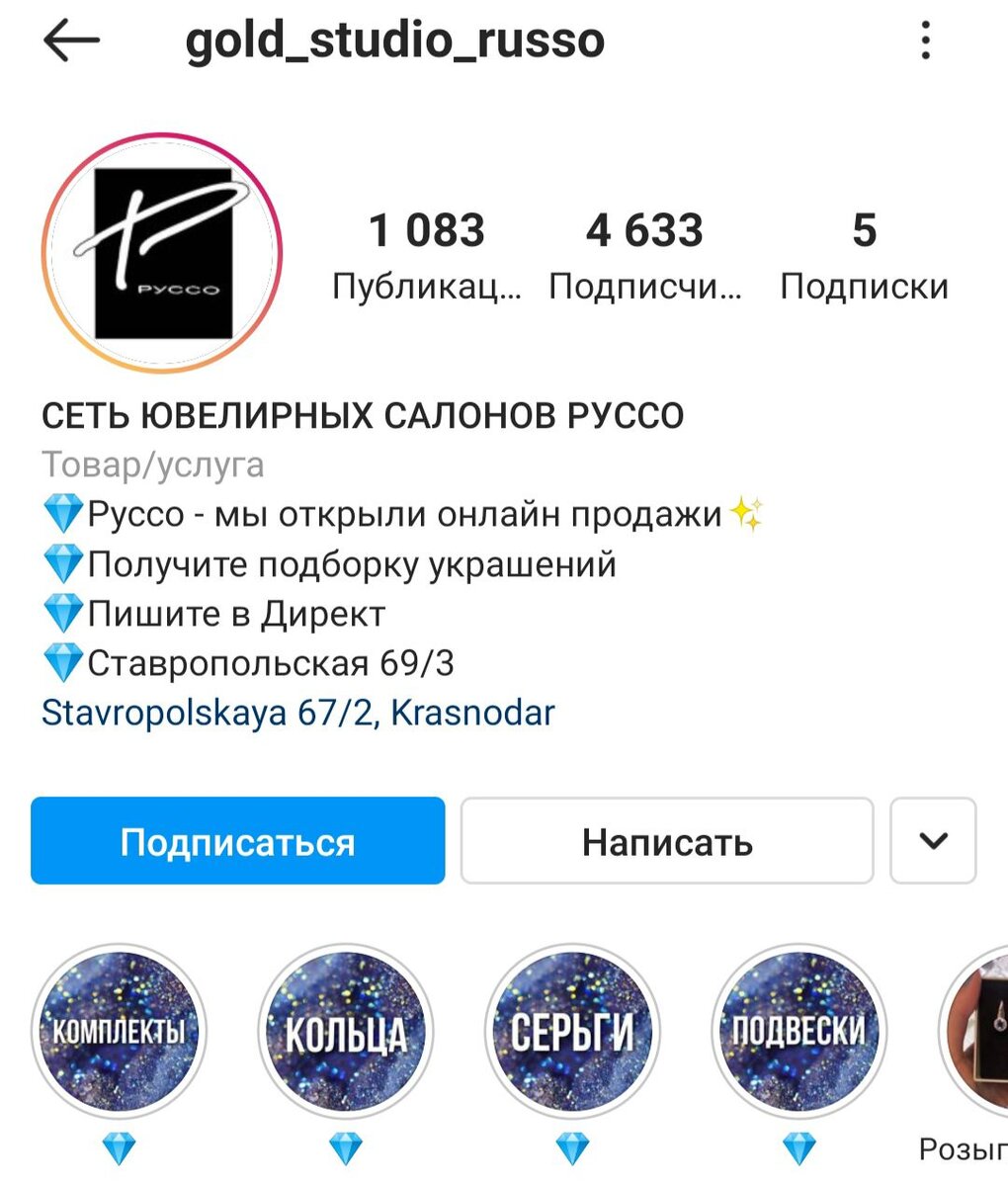 Продвижение в Instagram страницы сети ювелирных салонов «Руссо»