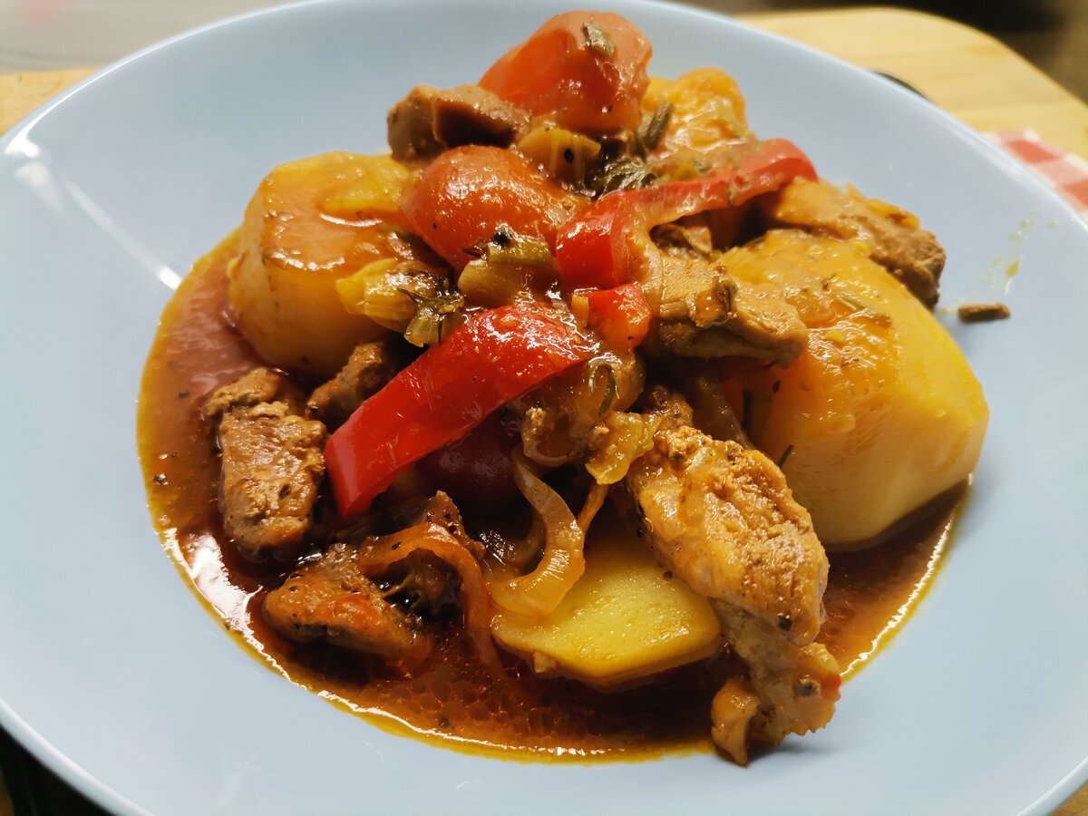 Томленое, нежное и сочное мясо в темном пиве с картофелем готово!