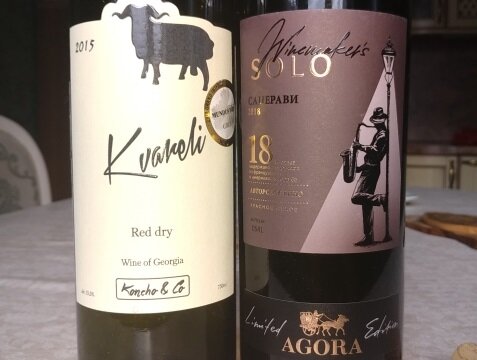 Попробовать очень хотелось, подходящей бутылки для сравнения не было. Вернее, выбор-то есть, но все уже были расписаны на другие сравнения. В итоге решил сравнить с саперави, просто под рукой было вино иной ценовой категории. Зато грузинский саперави, что означает премьеру страны в моём блоге. Грузинских вин раньше у меня на сравнениях не было.