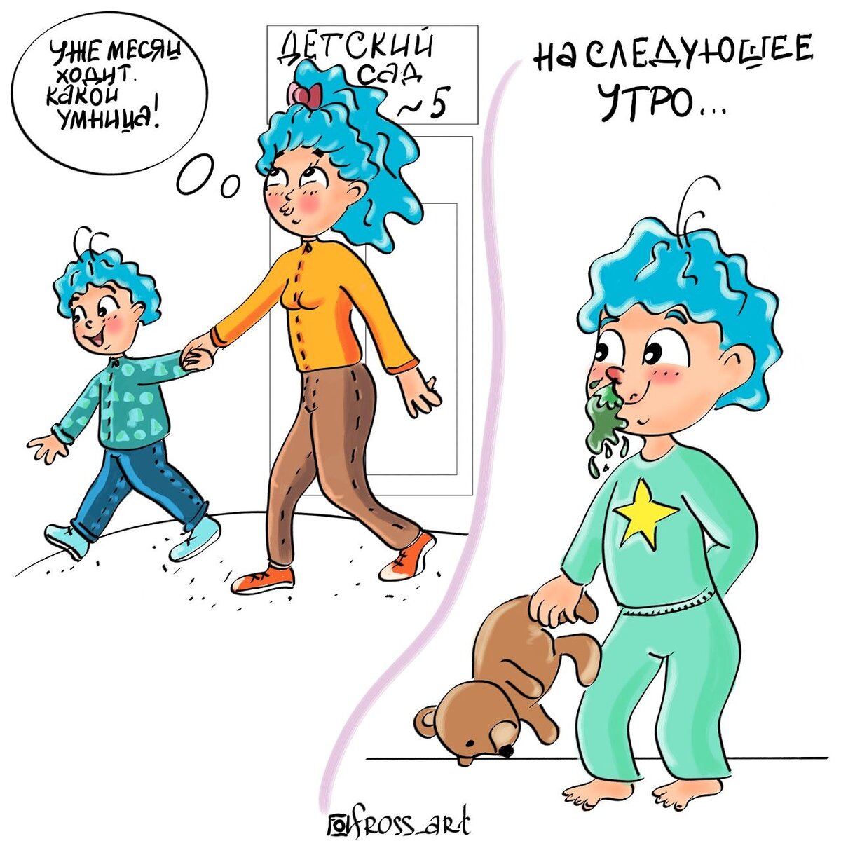 По простому говоря, каждый ребенок в саду - носитель определенной инфекции. Кто-то заразит вашего ребёнка, кого-то заразит ваш ребенок. Все зависит от того, болел ли ребенок этой инфекцией. И это абсолютно не говорит о том, что у ребенка слабый иммунитет! Просто у соседкого мальчика 3 брата и он уже встречался с этим возбудителем , поэтому не болеет. Кто-то ходил в ТЦ и встретил там такого мальчика, переболел. Поэтому НЕ НУЖНО ПИЧКАТЬ РЕБЕНКА ФЕРОНАМИ, ИММУНОСТИМУЛЯТОРАМИ, ИММУНОМОДУЛЯТОРАМИ и т.д. НЕ НУЖНО капать в нос антибиотики, муколитики, коллоидное серебро, сложные капли, альбуцид, Диоксидин Малыш болеет вирусными инфекциями, но сравнительно легко. В норме насморк при ОРВИ длится от 1 до 3 недель. В результате ребенок болеет 6 -10 раз в году. Что же делать? 👍 Адекватная влажность воздуха около 55%, проветривание❗( следите, чтоб в саду обязательно проветривали), промывание носа солевыми растворами, температура воздуха в пределах 22С, прием витамина Д, учите мыть руки. Также