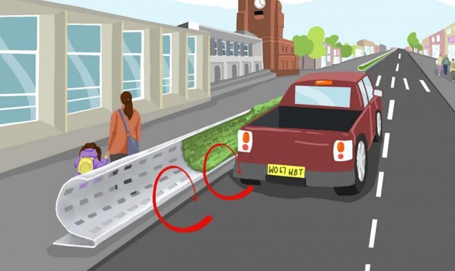 Остроумный дорожный барьер защитит пешеходов от автомобильных выхлопов