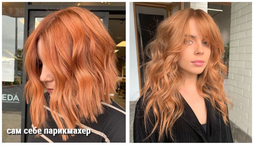 Мягкий персиково-медный замечательно ложится на светлый блонд или естественный русый. Цвет выглядит необычно, но элегантно.