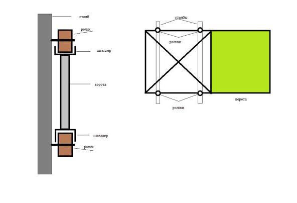 Ролики с проточкой по ширине балки ворот. На рисунке всё просто. Можно объединить две идеи, с низу оставить швеллер, а с верху ролик с балкой. Да, на балку то же будет попадать пыль и снег, но там нет бортиков и это будет самоочищаться.