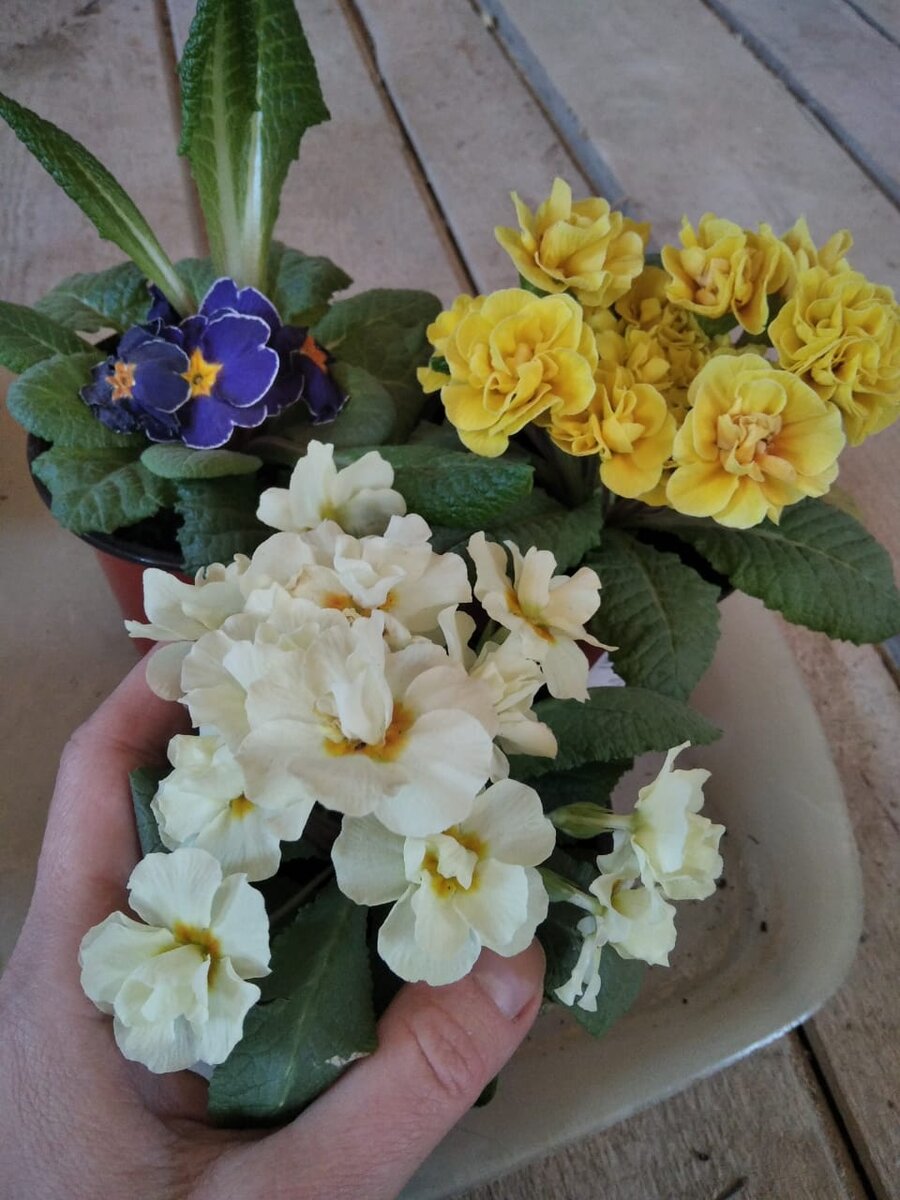 6 марта купила в Ашане примулы по 129 руб. Пересаживать не стала (хотя в Интернете есть такие рекомендации), а просто отнесла в сарай, где +7.