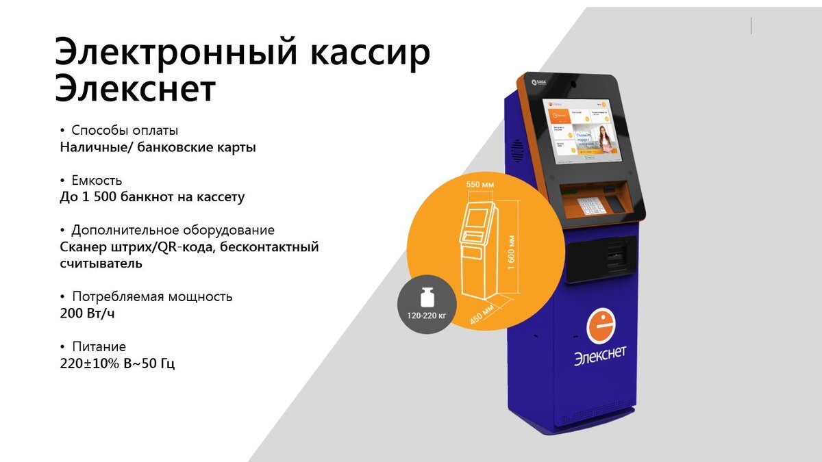 Удобное решение для удовлетворения потребностей клиентов – установка электронного кассира от «Элекснет». С его помощью покупатель может оплатить ваш товар или услугу и тут же погасить кредит, положить деньги на счет или перевести средства родным.