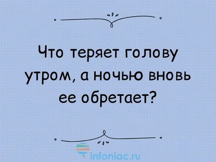 1. Что теряет голову утром, а ночью вновь ее обретает?