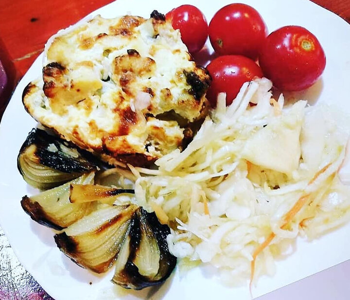 В качестве гарнира - квашенная капуста и черри. Приятного аппетита!