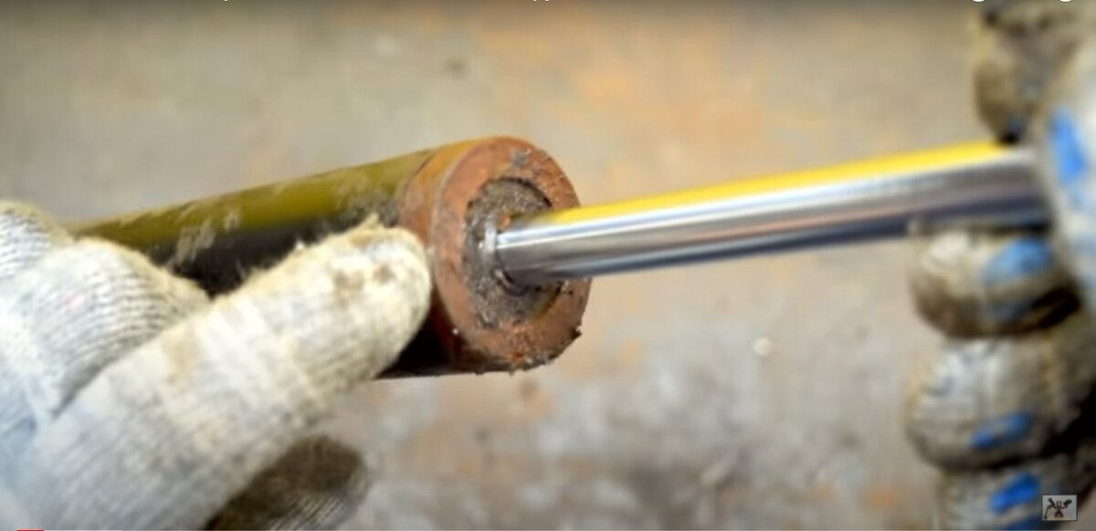 После всех с манипуляции со стойкой, в руках в принципе уже был готовый насос, но вот беда он получается обратного действия. Поэтому пришлось его усовершенствовать. Обратите внимание поршень на газо-масляных амортизаторах резиновый.