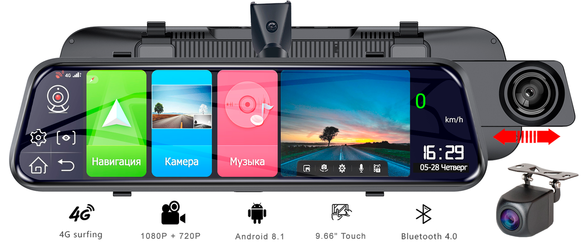 Зеркало поставляется с камерой заднего вида (1920х1080) и оснащена парковочными линиями , при включении задней передачи картинка с тыловой камеры автоматически выводится на