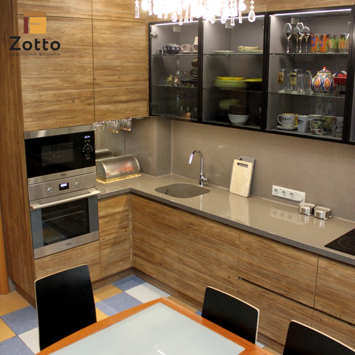 - Дизайн. Производители предлагают широкий спектр моделей кухонных стеклянных фасадов, подходящих под любой стиль. Также стекло отлично сочетается с другими материалами: древесиной, пластиком, МДФ и т.д.
