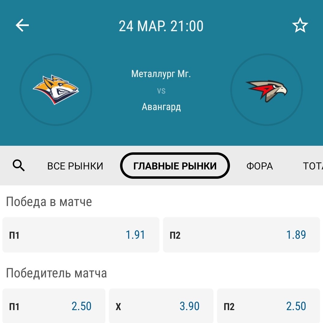 Металлург - Авангард КХЛ, выявлена 100% ставка.