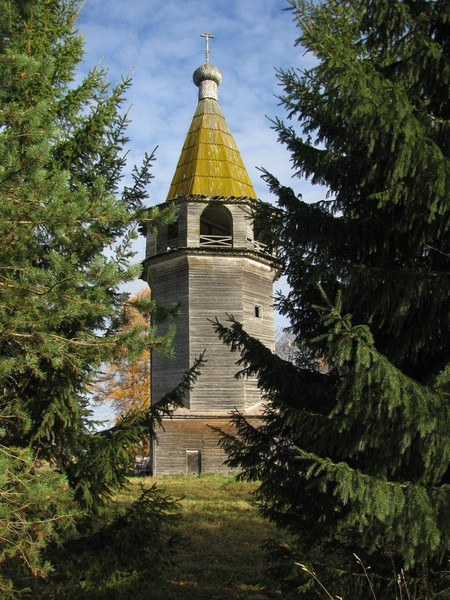 После, по дороге мы посмотрели кучу деревянных церквей, часовен, и пообщались с очаровательной местной жительницей Надеждой, которая открыла нам Храм Богоявления и дала ключи от другой, маленькой часовенки, часовни Илии Пророка, которая находилась на несколько километров дальше, в селе Большой Халуй. Поехать с нами она не смогла, т.к. сын скоро должен был придти из школы.