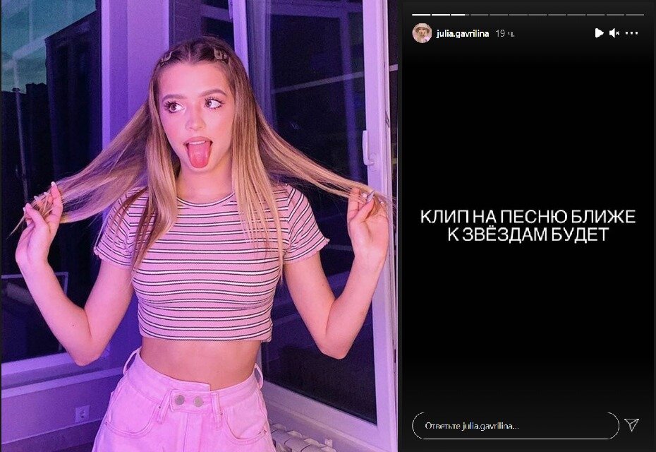 "Клип на песню "Ближе к звездам будет!", - об этом рассказала подписчикам Юлия Гаврилина, резидент "HYPE HOUSE".
