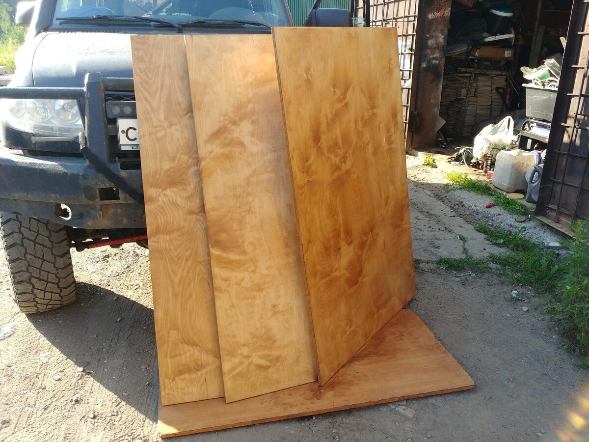 Начал с полотен для спального места. Фанеру купил 16мм толщиной и порезал там же, в Леруа Мерлен. Спальное место получилось 200x105 см (так было удобнее резать с наименьшим количеством отходов :) ).