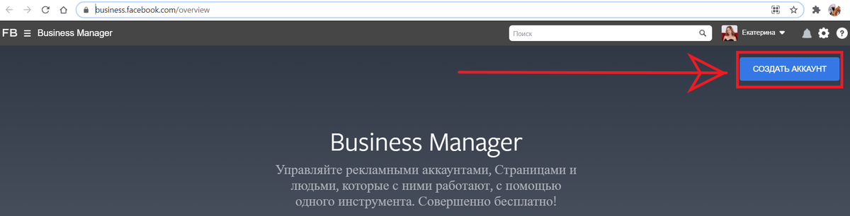 3. На следующий день создаем Бизнес-менеджер в Facebook (если он не был создан ранее)