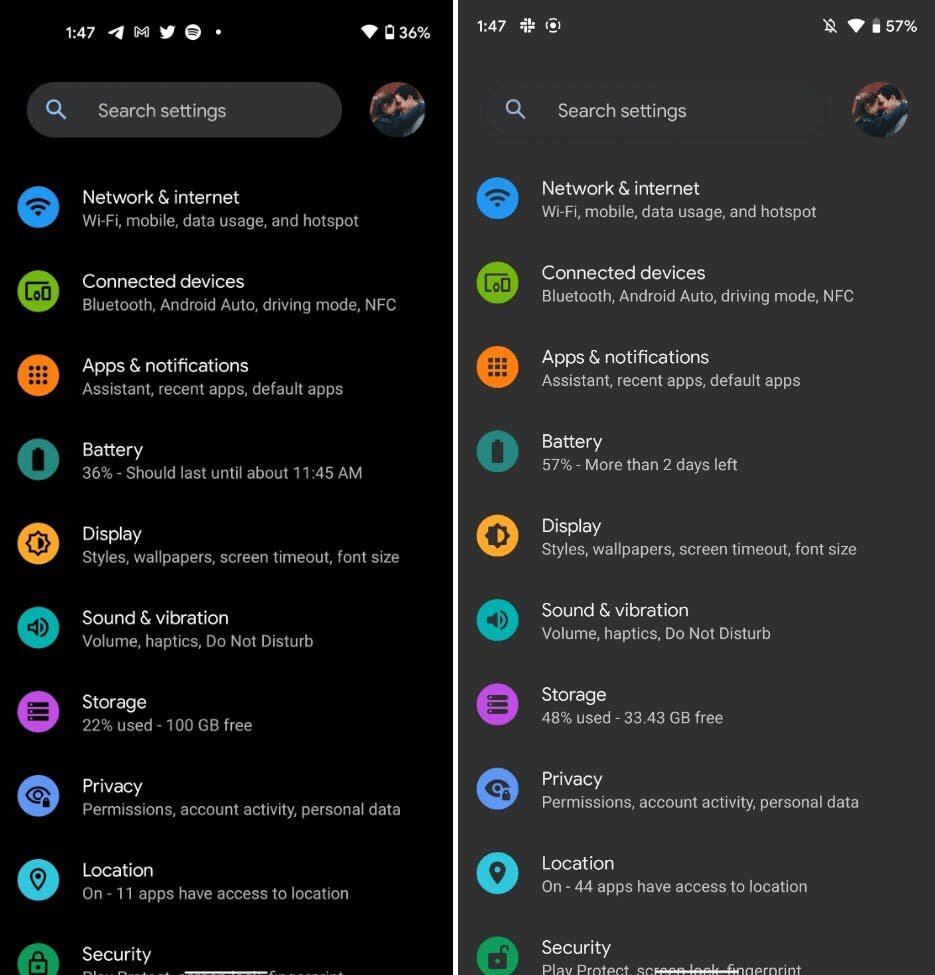 - Система по-прежнему предлагает темную тему, но теперь она становится светлее и ярче. Это позволяет рачительнее расходовать энергию на OLED-дисплеях.
