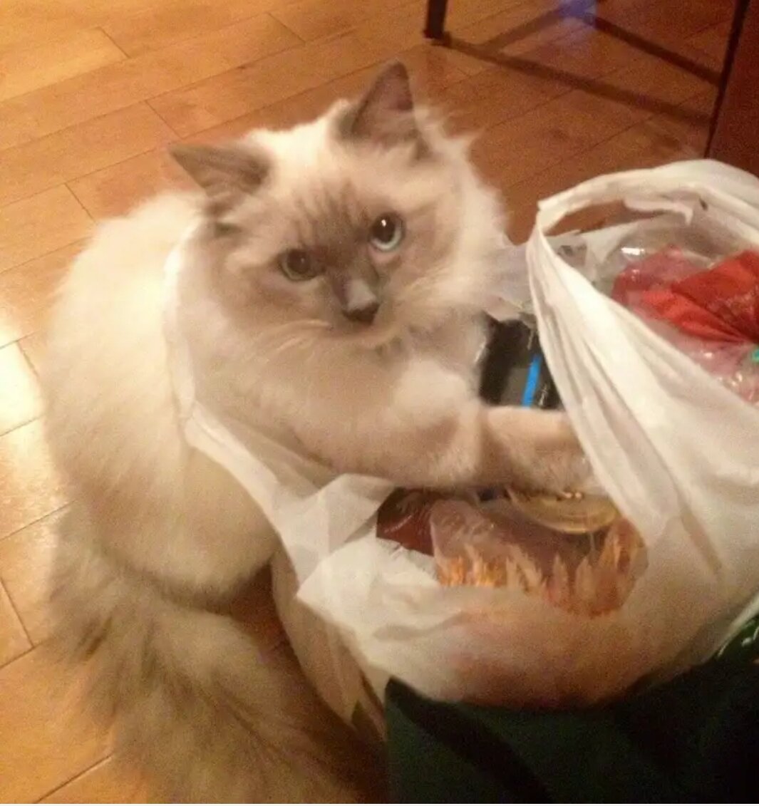 Все за тебя приходится делать, даже продукты не можешь выложить. СТОП. А где мой корм???