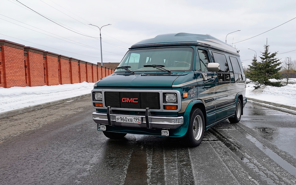 Машина на этих фотографиях — одна из поздних , рожденная в 1995 - м , и если у вас возникает логичный вопрос насчет шильдика GMC на радиаторной решетке , спешим на него ответить . Тут не шильдик , а вся передняя часть позаимствована у модели GMC Vandura чуть более ранней серии : так решил предыдущий владелец ради лучшего света фар и дизайна , передающего привет фургону из культового сериала « Команда А ». Хотя по сути Vandura и Chevy Van близнецы - братья .