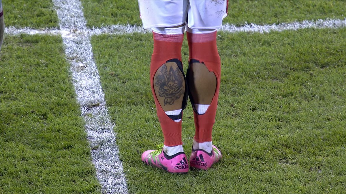- У англичанина отношения с трикотажем не сложились по другой причине – его икроножные мышцы слишком объемны, и заводские гетры банально доставляют ему неудобство чрезмерным давлением. Проблема не только в чувстве комфорта – на поздних стадиях матча это может обернуться болью и даже судорогами.