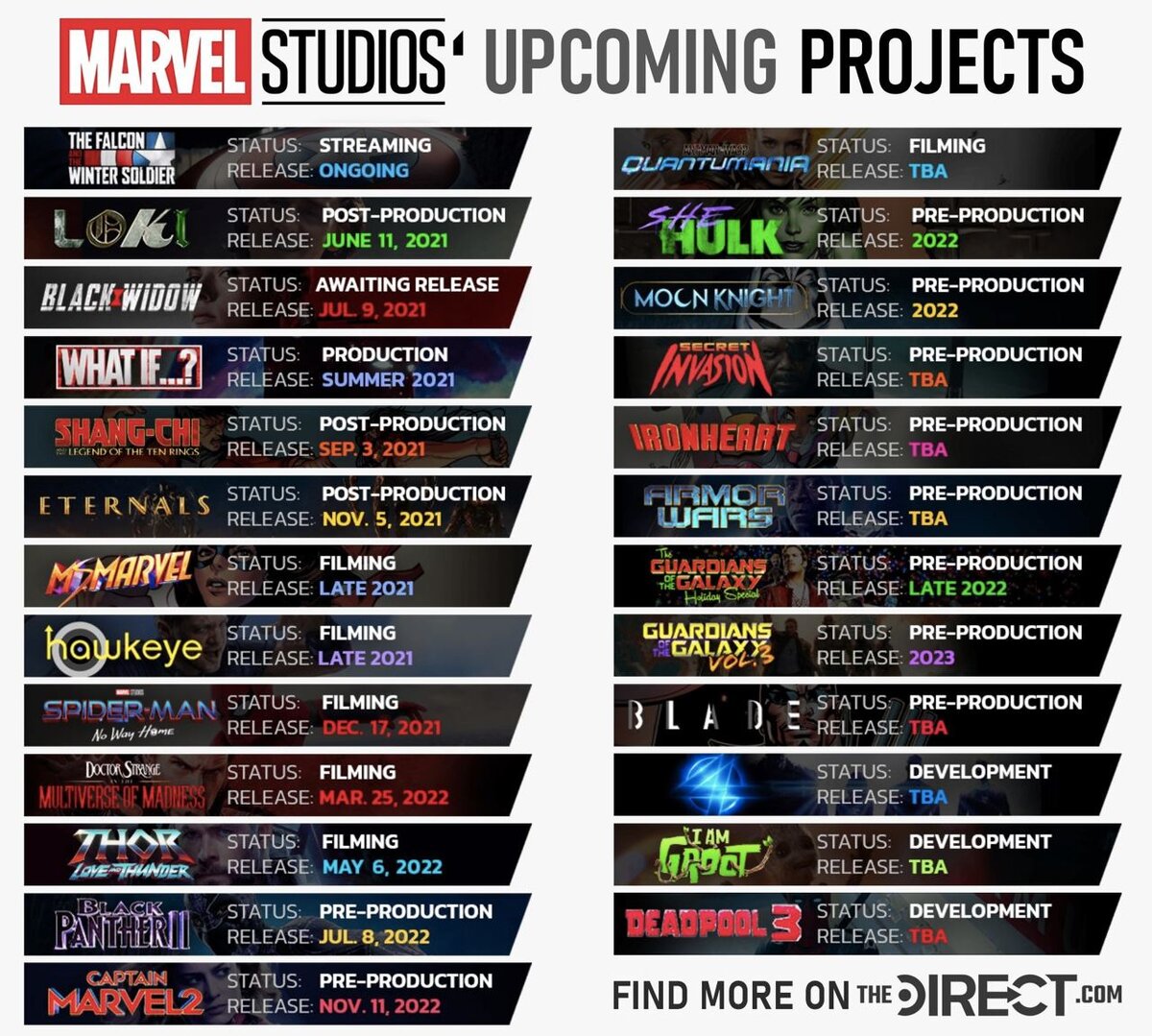 Премьеры Marvel Studios на данный момент выглядят следующим образом: