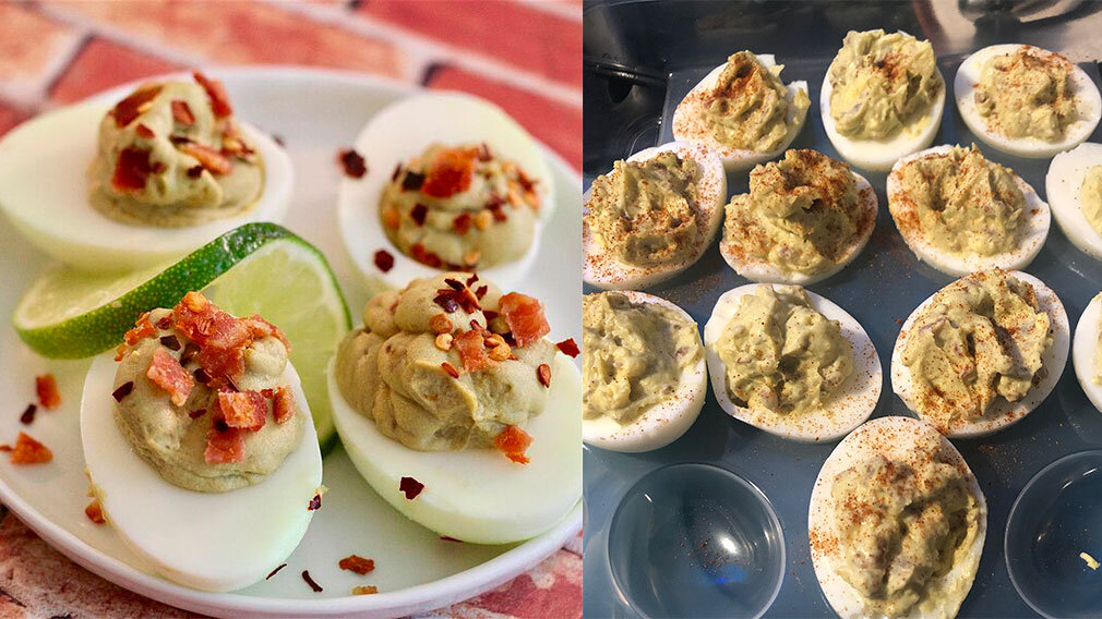 Яйца, фаршированные авокадо и беконом