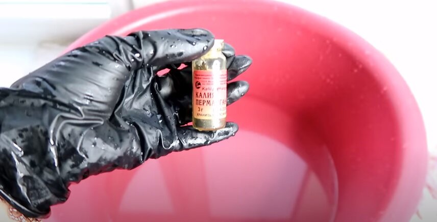 И так секрет данного способа заключается в марганцовке, и всё. Не надо ни каких фэри и прочей химии, только марганцовка. Важно правильно соблюсти пропорции.