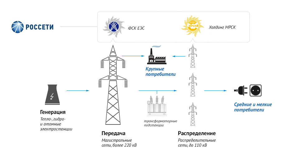 Распределительные сетевые компании занимаются транспортировкой электроэнергии от производителей к потребителям. Именно такие компании устанавливают и содержат всю инфраструктуру: линии электропередач и трансформаторные подстанции (специальные электроустановки для приема, преобразования и распределения электроэнергии).