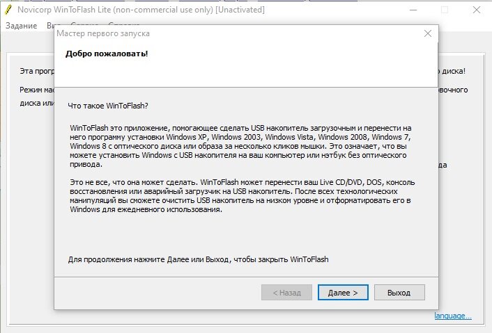 WinToFlash - Это приложение для создания загрузочной флешки, с помощью нее можно создать загрузочную флешку с операционной системой для последующей ее установки на компьютер. Приложение простое в использовании и сам ее функционал построен таким образом, что пользователя пошагово сопровождают в ее функционале. Приложение имеет как бесплатную версию, так и платную. Мы будем использовать бесплатную, этого вполне хватает, чтобы выполнить задачу по созданию загрузочной флешки.