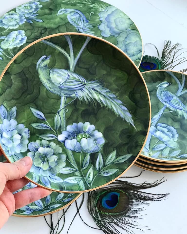 Малахитовый сервиз «Райский сад». Роспись в стиле шинуазри