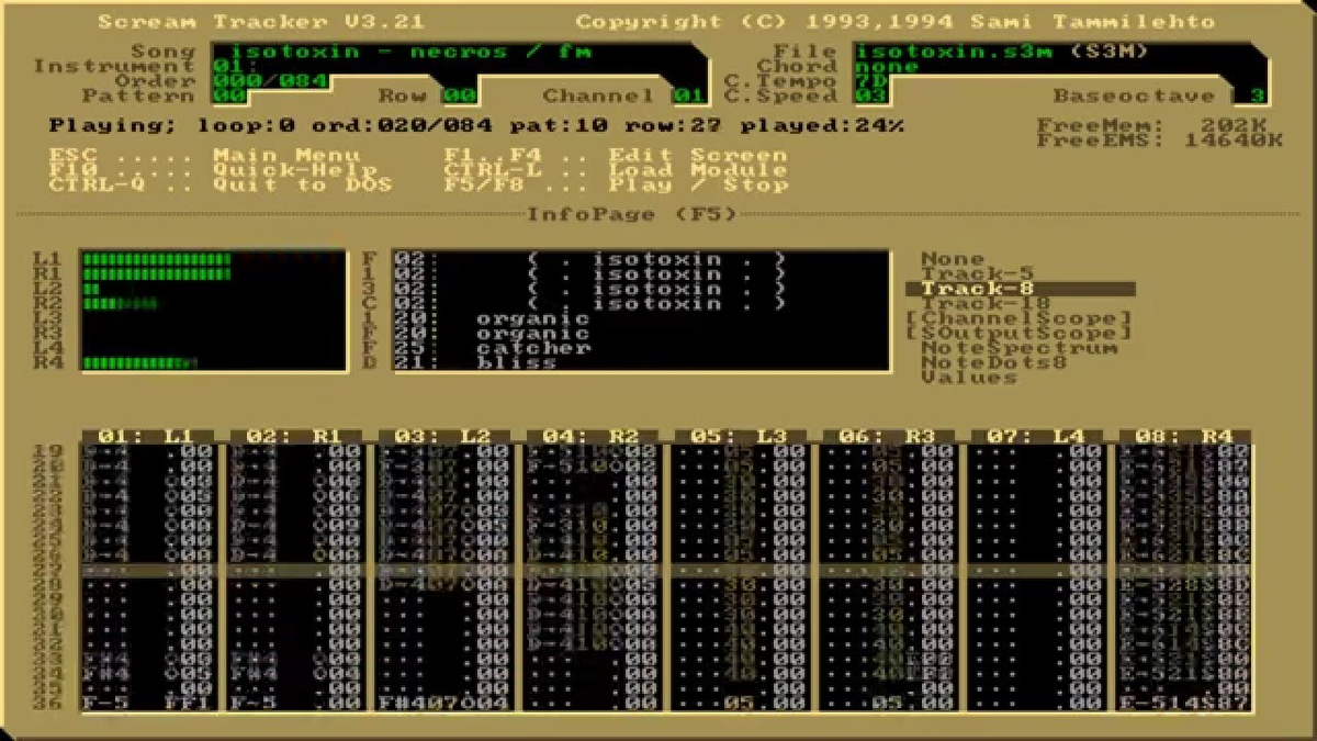 Мы делали музыку в редакторе Scream Tracker, и так как описание формата S3M у меня было, я реализовал его и в игре, только кое-что изменил.