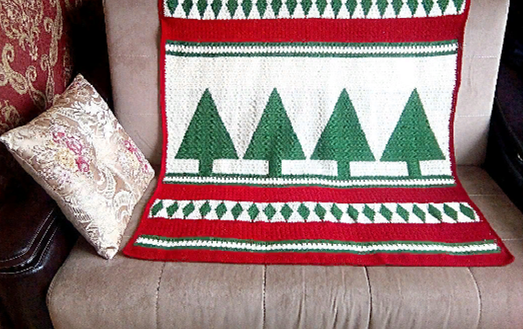 Если вы вяжете жаккард крючком, то вам постоянно надо менять нить. И как сделать так, чтоб рисунок не сбивался? Этот прием я использовала при вязании своего новогоднего детского пледа. Я вывязывала узоры, используя по два и три цвета.