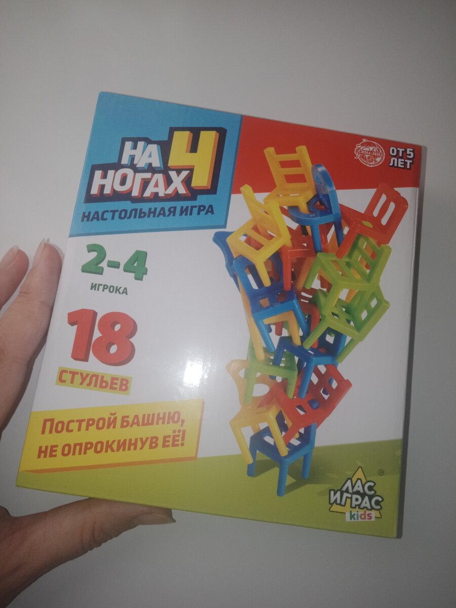 Настольная игра называется "На 4 ногах", впервые я ее увидела в одном интернет магазине игрушек, а тут такую же игру нашла в обычном магазине и даже дешевле.Вот купили...