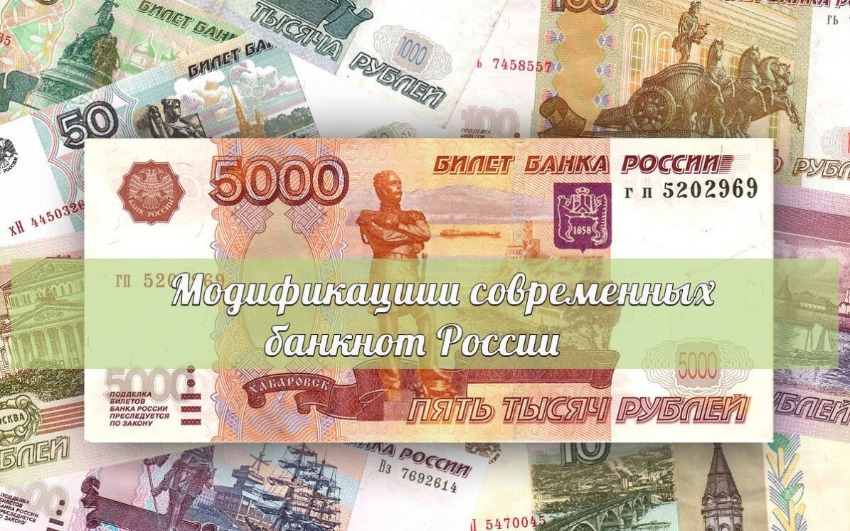 Дизайн российских банкнот, в основном, остается без изменений с 1997 года. Когда в обращение поступили новые купюры образца 1997 года, которые по своему дизайну полностью повторяли старые (образца 1995 ), но имели два существенных отличия: дату "1997" и номинал, сокращённый в тысячу раз. Для увеличения износоустойчивости и повышения защитных свойств, в банкноты периодически вносятся те или иные изменения. Следовательно меняется их внешний вид. Для денежных расчетов это не принципиально, а для коллекционеров - это уже совершенно новые купюры, некоторые из них могут быть очень редкими и дорогими. Первые выпуски с датой "1997" и без пометки "модификация" до сих пор находятся в обращении, но постепенно изымаются, в связи с чем их коллекционная ценность растёт (особенно на мелкие купюры, быстро приходящие в негодность).