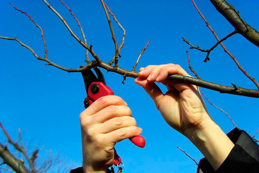 1. Начинаем обрезку сада в марте, как только ночные температуры станут выше – 10 ̊ С (вторая-третья декады марта). Формируем молодые деревья, прореживаем или омолаживаем взрослые, вырезаем больные и поломанные ветки до начала сокодвижения.
