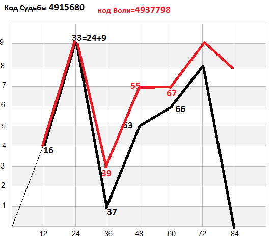 Любая точка- это не один какой-то конкретный день. Идёт подготовка к проверке. Возникают острые ситуации. Они всё равно будут! Но насколько они будут тяжёлыми, будет зависеть от нашей осознанности. Возраст на конкретной точке высчитывается так: берётся возраст (число) по горизонтальной линии графика. Например, 48 лет. Для этого возраста действует число 5 кода. В точке, соответствующей 5 возраст человека будет 48+5=53 года. И так по всем точкам.: 12+4=16, 24+9=33 и так далее.