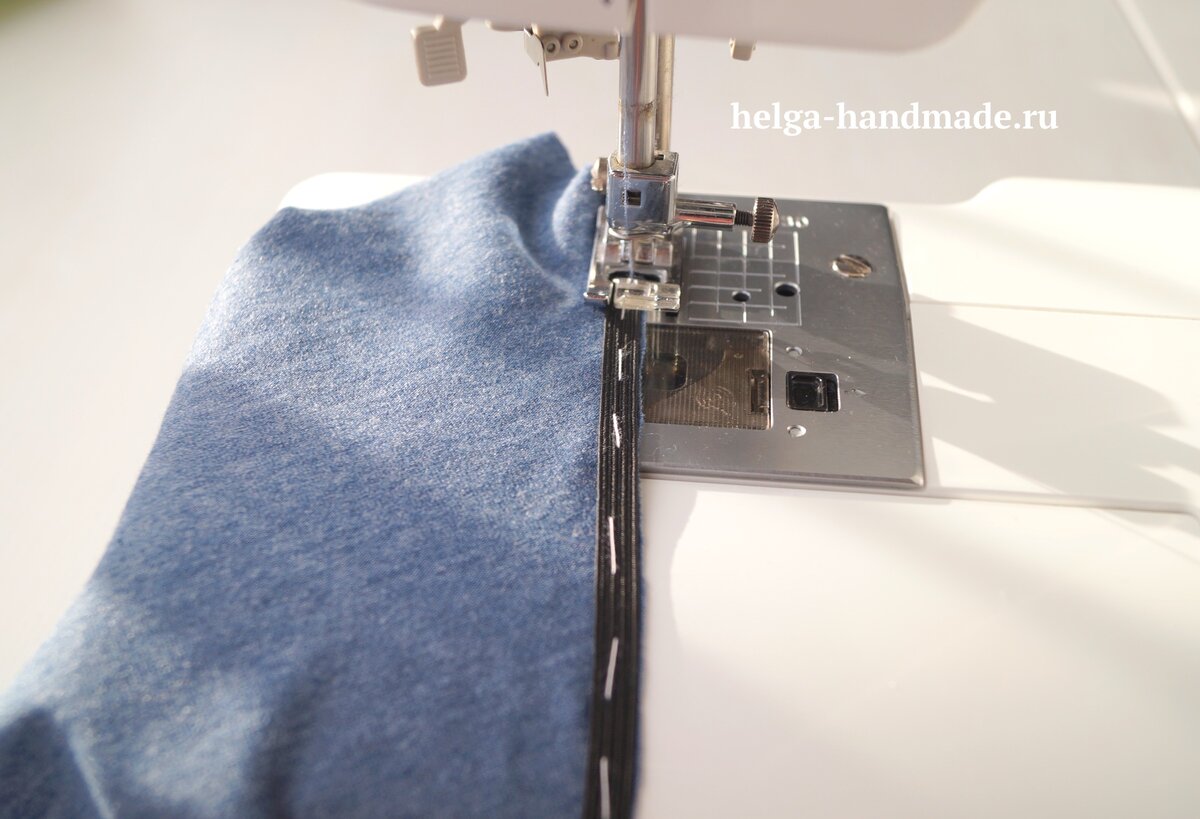 Затем я пришиваю резинку на бытовой швейной машине эластичным зигзагом.