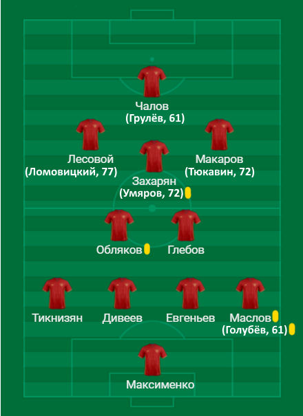 Чалова тоже стоит выделить за умную игру. На свой счёт он записал и голевой пас на Тикнизяна, который поразил своей работоспособностью и был награждён забитым мячом.