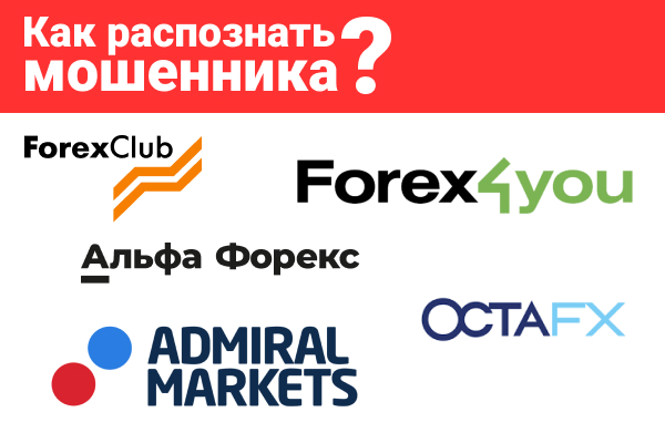 «Альфа-Форекс», Forex4 you, Admiral Markets и другие популярные форекс-брокеры имеют узнаваемые логотипы, названия, оформление официальных сайтов. Их именем и известностью пользуются мошенники, копирующие образ компании. Зачастую их можно узнать по отличающемуся от оригинала доменному имени или логотипу, хотя многие люди не присматриваются к таким мелочам и ведутся на обертку.