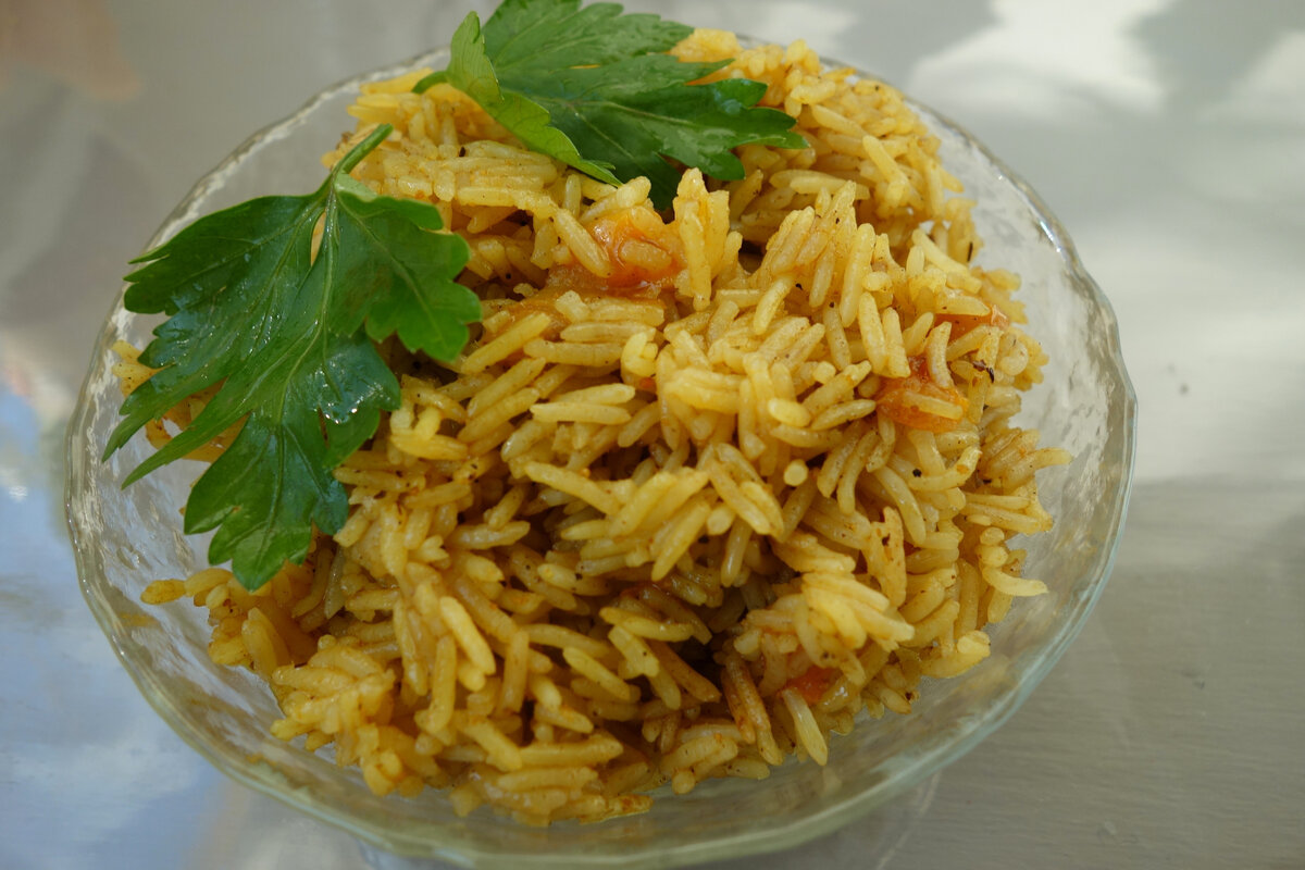 Комбинация специй и приправ может быть любой. Обычно я в качестве «фона» беру куркуму и зиру – классическую основу индийской (и не только) кухни. С удовольствием добавляю сушеный барбарис – он придает кислинку, мелко нарезанный изюм, чернослив или курагу – немного, если только не планируете готовить сладкий рис. А вообще, меняя ингредиенты, можно изменить вкус готового блюда полностью.